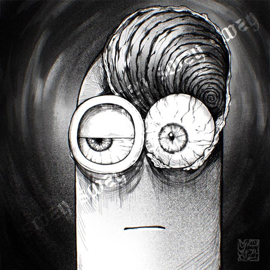 Yellow Banana In Overalls is Mixed with Manga Horror Style UZUMAKI Print